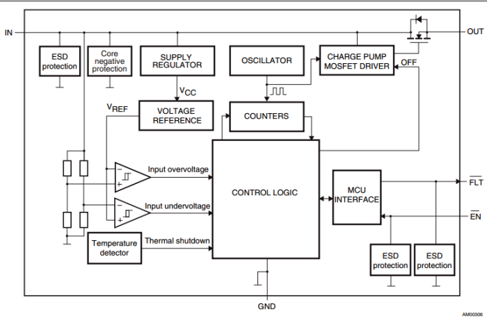 此外,該器件還監測其自身的結溫度,如果結溫度超過規定的極限,則關閉內部MOSFET。