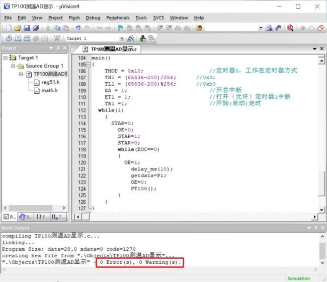 運用所學單片機知識,完成溫度信號的測量。要求如下:單片機系統(tǒng)選擇使用AT89C51,通過熱敏電阻PT100檢測溫度并使用AD轉(zhuǎn)換獲取溫度值(不允許使用DS18B20等傳感器),在數(shù)碼管上顯示溫度值。