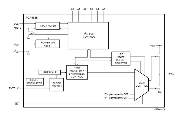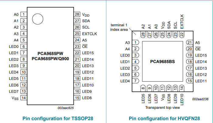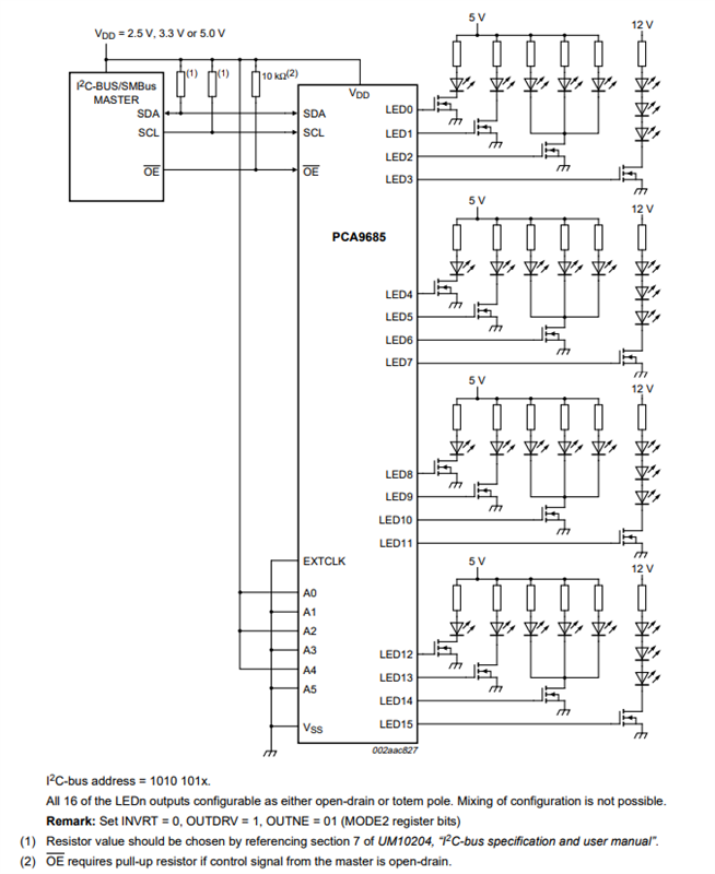 如果是PCA9685,則LEDn輸出引腳的上電復(fù)位(POR)默認(rèn)狀態(tài)為低電平。對(duì)于PCA9635則為高電平