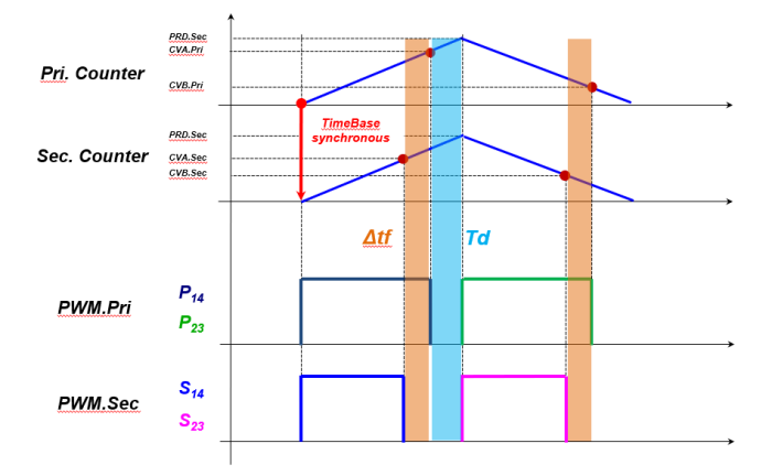 2個HRPWM高分辨率PWM中斷,最大定時頻率600kHz。要求具有精準的對上升沿和下降沿的控制。