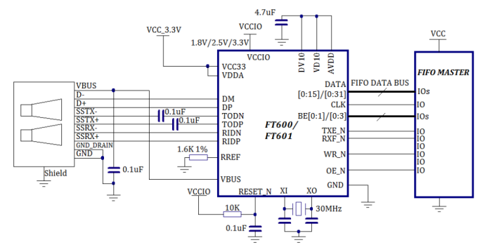 FT600/FT601連接到FIFO主接口(245同步FIFO模式)