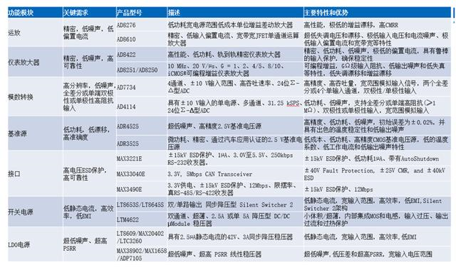 圖4所示為ADI應(yīng)變計(jì)測(cè)量方案信號(hào)鏈中型號(hào)特性描述。