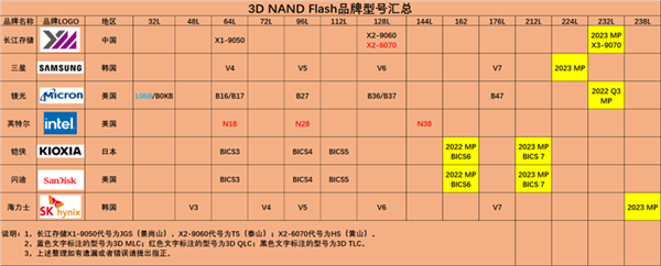下面是各大NAND Flash芯片生產廠商在3D NAND Flash產品的量產狀況: