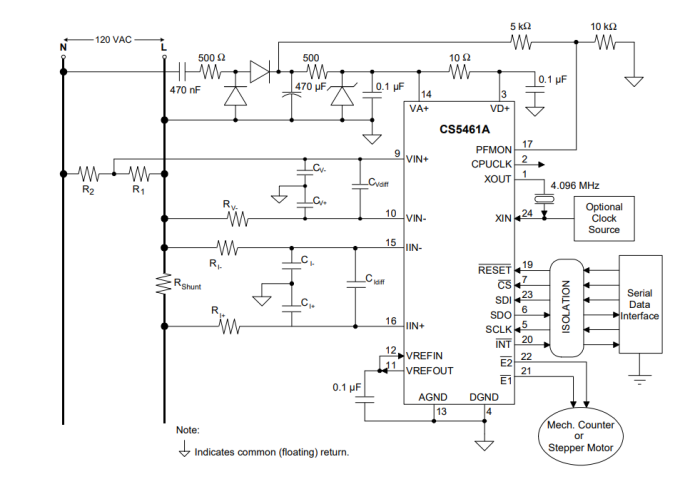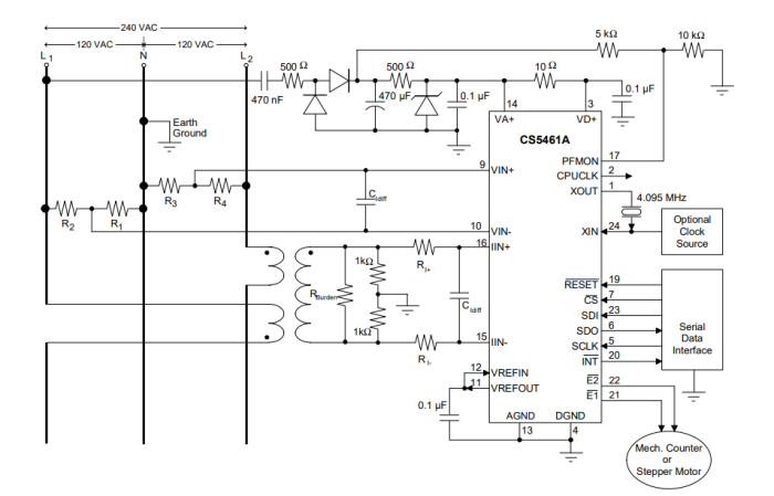 CS5461A-ISZR經過優化,可連接分流電阻器或電流互感器進行電流測量,并連接電阻分壓器或電勢用于電壓測量的變壓器。