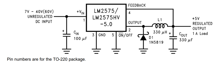 LM2575系列為流行的三端線性調節器提供了一種高效的替代品。它大大減小了散熱器的尺寸,并且在許多情況下不需要散熱器。