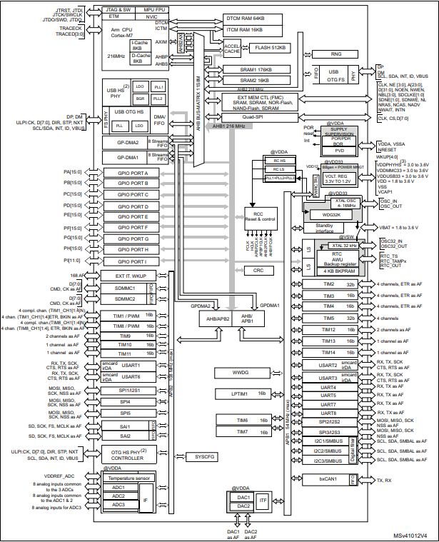 高級外圍設備包括兩個SDMMC接口和一個靈活的內存控制(FMC)