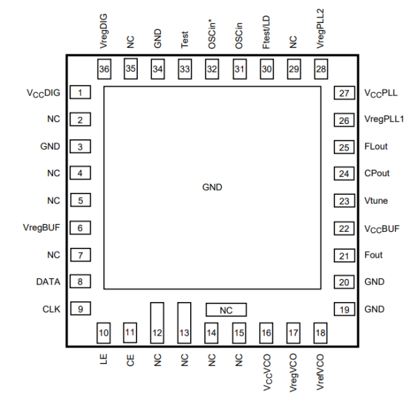 ●36針6 mmx6 mmx0.8 mm WQFN封裝