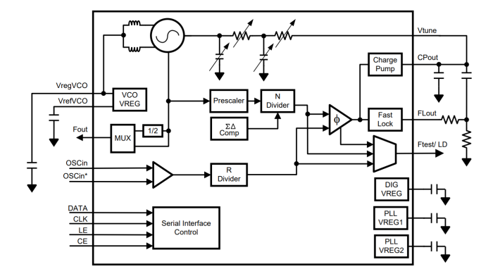 當與高質量參考振蕩器結合使用時,LMX2531LQ1742/NOPB器件可為無線通信設備中的上、 下轉換產生非常穩定、 低噪聲的本機振蕩器信號。該器件是一款采用先進BiCMOS工藝制造的單 片集成電路。此產品的幾個不同版本適用于不同的頻段。
