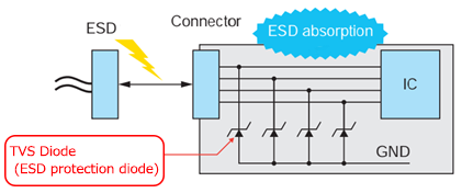 采用TVS二極管(ESD保護二極管),可吸收侵入性的ESD,防止電路故障,保護IC等器件!