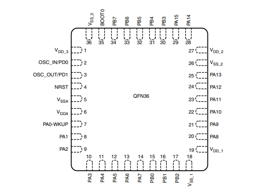 2、32位處理能力:STM32F101T6U6A是一款32位微控制器,相比傳統的8位和16位微控制器,具有更大的地址空間和更強的處理能力,能夠處理更復雜的任務。