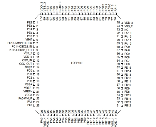 STM32F303VET6TR的引腳封裝圖