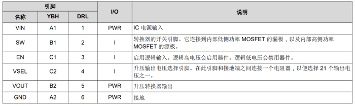 TPS61299YBHR引腳和引腳功能