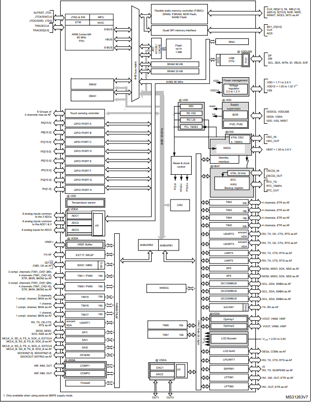 STM32L476VGT6的功能框圖