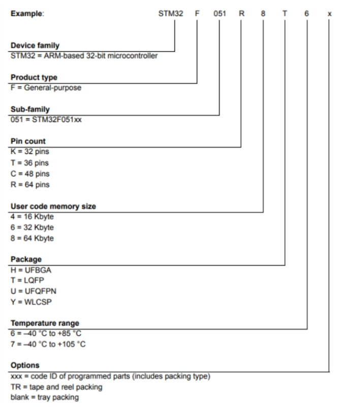 STM32F051C8T7的型號解釋圖
