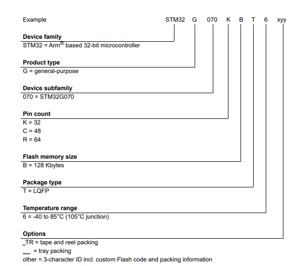 ST意法STM32G070CBT6TR的中文參數(shù)