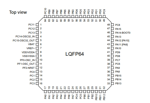 STM32G081RBT6提供標準通信接口(兩個I2C、兩個SPI/一個I2S、一個HDMI CEC和四個USART)、一個12位ADC(2.5MSps),最多19個通道、一個帶兩個通道的12位DAC、兩個快速比較器、一個內部電壓參考緩沖器、一個低功耗RTC、一個以兩倍CPU頻率運行的高級控制PWM定時器、,五個通用16位定時器,其中一個運行頻率為CPU頻率的兩倍,一個32位通用定時器,兩個基本定時器,兩兩個低功耗16位定時器、兩個看門狗定時器和一個SysTick定時器。