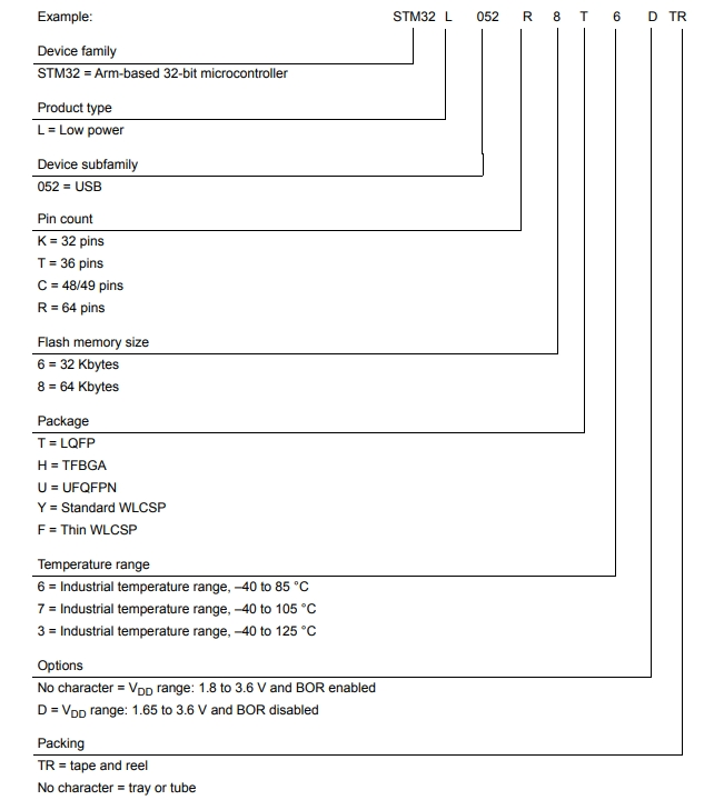 STM32L052T8Y6TR的型號(hào)解釋圖