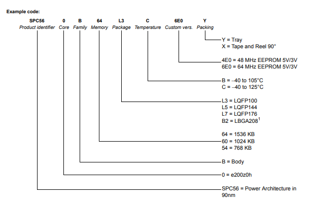 意法半導體SPC560B60L7B6E0X的型號解釋圖