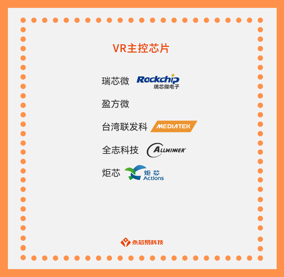 除了以上兩家公司,國內還有不少VR主控芯片的研發企業,比如全志科技、瑞芯微、炬芯、盈方微等。