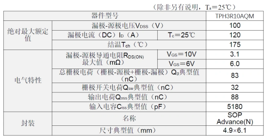 東芝Toshiba推出100V N溝道功率MOSFET“TPH3R10AQM”
