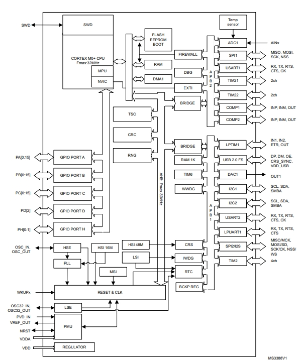 STM32L052K8U6意法單片機中文參數、引腳圖及應用場景介紹