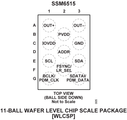 SSM6515可采用I2C控制接口或在獨(dú)立模式下工作,額定溫度范圍為?40°C至+85°C。該器件內(nèi)置輸出短路保護(hù)功能。SSM6515采用11引腳、0.984 mm × 1.444 mm、無鹵0.35 mm間距晶圓級芯片規(guī)模封裝(WLCSP)。