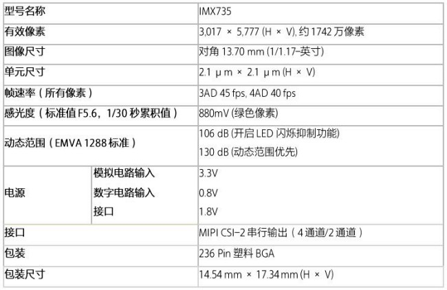 索尼半導體解決方案公司(下稱“SSS”)今天宣布推出用于車載攝像頭的新型CMOS圖像傳感器IMX735,像素水平實現突破,高達1742萬有效像素*1。